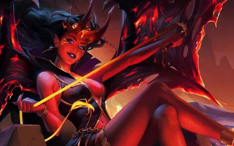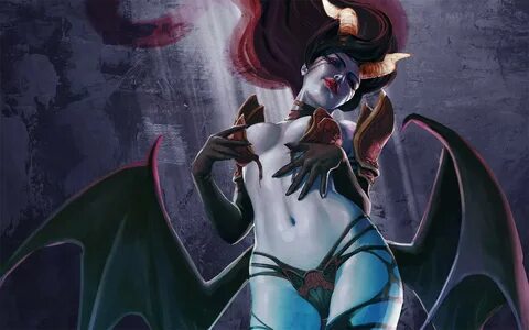 Wallpaper : illustration, video games, anime, horns, cleavage, demon, Dota 2, Qu